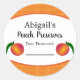 Your home made preserves and jams deserve a unique and pretty label. Personalise this round peach patterned fruit label with your name and product to affix to your jars or other containers. Room to hand write the date or year you preserved your goodies as you use them.