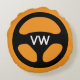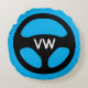 Round car steering wheel custom monogrammed Round Pillow . Cool novelty automotive design with personalised monogram name initial letters. Funny gift idea for mechanic or kids room / boys bedroom. Custom monogrammed pillow cushion for sofa, couch or bed. Automotive design home decor. Blue and orange or custom colours.
