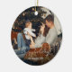 Round christmas holiday ornament with handwritten Happy holidays and customisable photo. A great gift or family memory. Click the edit button to personalise it with your own picture and details.
