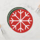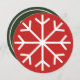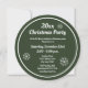 Round Christmas Holiday corporate office party invitations. Custom party invites for business meeting or company event. Personalizable text and background colours. Circle cutout shape with snowflake design in traditional red white and green colours. Simple template for inviting friends, partners, employees, colleagues, co workers, staff, personnel, volunteers, boss, managers, family. Modern double sided template print with elegant script typography. Can also be used for family gathering or xmas reunions.