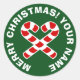 Round Christmas stickers with candy cane heart. Add your own name. Personalized favor stickers, present labels and envelope seals. CUte little xmas design for adults and kids (little boys and girls). Neutral design with customizable background color. Cute typography design for the holiday season.