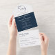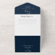 Round Classic Navy Blue Monogram Wedding All in One Invitation