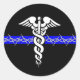 The Thin Blue Line of Law Enforcement with the barbed wire of Corrections, topped with the caduceus of nursing. The perfect combo for a Jail or Prison Nurse!