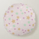 Round cushion with star design, ideal for decorating a baby or girl's room.