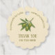 Add a touch of elegance to your products with our round custom business thank you tag featuring a delicate olive branch illustration. Perfect for expressing your gratitude to customers or clients, this tag combines a refined design with personalised text, making it a stylish addition to your packaging. Crafted with care, it’s a thoughtful detail that shows your appreciation and elevates your brand’s presentation.