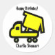 Yellow dump truck with "happy birthday" message above and child's name below. Great way to include a gift enclosure card without the worries of the card getting lost. Adds a little bit of flare to any gift!