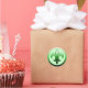 Round stickers in your choice of two sizes, with a large fleur de lis design. This one is green, and we added a pale green background but you can easily change that to any colour you like. The fleur-de-lis is a stylised lily (in French, fleur means flower, and lis means lily) or iris used as a decorative design or symbol. It's a symbol of all things France, and Quebec, and New Orleans and many other places.