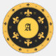 Round stickers in your choice of two sizes, with a large fleur de lis design. This one is black and gold, with an "A" in the centre. You can change that "A" to any letter or text you like, or remove it altogether. You can also change the background from white to any colour you like. The fleur-de-lis is a stylised lily (in French, fleur means flower, and lis means lily) or iris used as a decorative design or symbol. It's a symbol of all things France, and Quebec, and New Orleans and many other places.