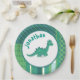 Round frame in gree/blue with cute dinosau paper plate