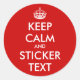 Round Keep Calm stickers. Customisable Keepcalm template with custom background colour and text. Vintage Keepcalmandcarryon theme. Create your own parody.