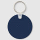 Round keychain with a dark blue background featuring a subtle red dot pattern. Shown in two identical views, front and back, with a silver ring.