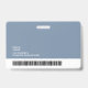 A modern and simple badge that does not distract from the important details. Easy to read from afar. Add a custom logo and company/hostpital/clinic details. Add the employee's name, photo, and professional title. The bar of colour can be modified to match the company's official colours. At the back, add more information such as return address and the employee's ID number. Perfect for round shaped logos.