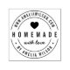 Round Modern Bold Homemade With Love Self Inking Rubber Stamp featuring the word "Homemade" in bold font "with love" in modern script, a cute heart and a double border for your web address and name in between it in bold. It's perfect for home cooks and bakers.