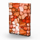 Uneven rounded designs that resemble some type of seed or stones, in reddish colors like coral and a slight shade of brown and also salmon color or peach.