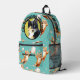 This fully customisable cat backpack (in a solid light teal with orange cats chasing bubbles) allows you to upload your favourite cat photo, meaningful text, or even swap in a variety of background designs. Imagine your cat's pic splashed across the front, a motivational quote keeping you company, or a funky patterned background – the possibilities are endless. Made with durable materials, this backpack is perfect for everyday adventures with your cat. So ditch the generic bags and design a masterpiece that reflects your unique style! Look for other variations of the theme in the collection below, or contact us to design something special just for you.