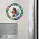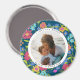 Celebrate a favorite family moment with this round photograph magnet and whimsical, navy blue, painterly wild flower pattern frame with editable text to memorialize a special event or person.