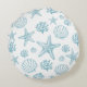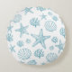 Round Pillow Teal Seashell Starfish Beachy Pattern