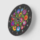Unique folklore composition with beautiful cut-out style flowers inspired by folk art Wycinanki from Lowicz Round Clock. Cute as a gift for folk loving person.