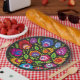 Unique folklore composition with beautiful cut-out style flowers inspired by folk art Wycinanki from Lowicz Paper Plate. Cute as a gift for folk loving person.