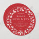 Round Red Holly Wreath Peace Love + Joy Holiday Card