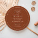 This classic wedding invitation features elegant script and serif fonts with a round border on the front and back. Customise this elegant round wedding invitation with your wedding details, QR code information, and more.