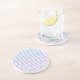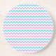 A pretty round Sandstone Coaster or drinks mat, with a pattern of Turquoise Blue, Candy Pink, Light Purple and White chevrons.