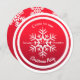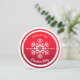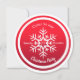 Winter holiday party invite in simple modern Scandinavian snowflake design on an elegant red gradient background. Created in a round paper shape for extra unique appeal. Text formatted on front and back all ready for you to edit with your own details.