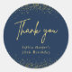 Add a touch of luxury to your party favors with these sophisticated navy blue and gold glitter confetti 'Thank You' stickers. Featuring a timeless and unisex design, these round labels are perfect for sealing envelopes, decorating gift boxes, or personalizing party bags for men or women. The deep navy background and sparkling gold dust create an upscale look for any milestone celebration, from a 30th to an 80th birthday. These high-quality stickers are fully customizable with your name and birthday, making it easy to show your appreciation to your guests with style.