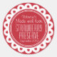 Red and white food love hearts label perfect for labelling red fruits preserves, jelly's, jams truffles or other food with made with strawberries, raspberries, loganberries, boysenberries or cranberries, perfect for Christmas gifts, cookie exchange parties or for selling your homemade products at farmer's market's and craft fairs. Use these stickers to seal your Christmas gifts or for a professional look to your for sale goodies. Also perfect for children's home cooked favours and gifts to family and friends. Currently reads Valentine's Made with love Strawberry Preserve plus add the date you item was produced. Fully customisable with your own name and product details and date. Designed by Sarah Trett.