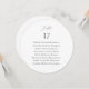 Designed in a timeless minimalist style, this piece combines a clear table number with a neatly organized list of guest names, helping guests easily find their assigned seats. The clean circular format and delicate typography add a soft, modern touch that works beautifully for black tie weddings, estate venues, and sophisticated celebrations.