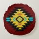 A geometric print on a soft round throw pillow