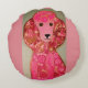 Rest on this comfortable 16 inch round throw pillow with the colourful pink poodle dog design!