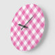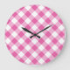 Round Wall Clock: Pink, White Check Gingham Large Clock
