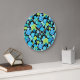 A chic Wall Clock with a quirky Blue Moons pattern in Aqua, Turquoise, Emerald Green, Neon Green and Dazzling Blue on a black background. Part of the Posh & Painterly 'Blue Moons' collection.