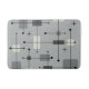 This atomic-age inspired mid century modern design has bold lines and geometric shapes in shades of grey.