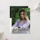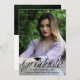 Photo on front and back... Rounded casual script graduation invitation announcement with mortarboard graduation cap icon, perfect for the high school or college grad. Modern minimalist typography, casual elegant script "Graduate" writing. Capture those special moments of growth and smiles of joy and youthfulness for all time. Upload a full portrait-mode cover photo of the graduate on front, and a landscape orientation photo als well as pertinent details of the graduation party on back. Automatically shades the perfect areas of the pic.