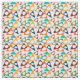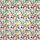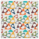 This fabric has a mid-century modern design of scattered triangles in retro colours with holes.