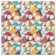 This fabric has a mid-century modern design of scattered triangles, some with holes, in retro colours.