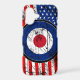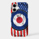 A US flag roundel design presented here in a grunge distressed style graphic print. Good for a patriotic occasion, sports, or for a gift with a retro ska mod look.