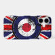 The Union Jack roundel design presented here in a grunge distressed style graphic print. Good for a patriotic occasion, sports, or for a gift with a retro ska mod look.