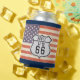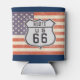 Route 66 can cooler includes a photo of an actual vintage sign from an American highway as well as a vintage American flag.