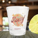 Rovinj City, Croatia (Hrvatska), Retro Vintage Design featuring a disco ball in light brown, pink, and light blue hues. This beautiful shot glass is a perfect accessory, gift or souvenir for Rovinj residents, visitors, tourists or fans.