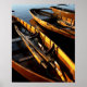 Wooden row boats line up on the foreshore of Derwentwater in the English Lake District. Rowing on the lake has been a popular activity for tourists visiting Keswick since Victorian times.