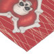 This table runner is dark red with a white spiral line pattern and a row of Gothic red hearts outlined with bones with skulls in the centre of the hearts.