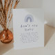 This boy rainbow don't say baby game baby shower pedestal sign from the Rowan Collection is perfect for a simple baby shower. This cute minimalist design features a unique light pale blue and white rainbow and is perfect for spring or summer.