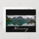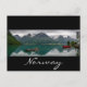 Postcard of a landscape with two old rowboats in a lake with the reflection of the mountains in the still water at Hjelle Hotel, Hjelle, Stryn, Sogn og Fjordane, Norway with black bars and the text: 'Norway'.