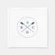 A smart rowing-themed design in navy lettering. Each napkin has a round 'logo' displaying crossed oars with a double 'stitched' navy circle with space for you to enter four initials.