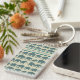 A cool Oblong Acrylic Keychain to personalise, with rows of Elephant silhouettes, filled with a Dark Blue and Burgundy Paisley pattern, on a Beige background. Part of the Posh & Painterly 'Heffalumps' collection.