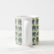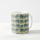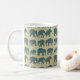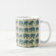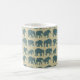 A fun White Ceramic Coffee Mug, with rows of Elephant silhouettes, filled with a Dark Blue and Burgundy Paisley pattern, on a Beige background. Part of the Posh & Painterly 'Heffalumps' collection.