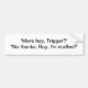 Bumper sticker with the quote ""More hay, Trigger?" "No thanks, Roy, I'm stuffed!""
